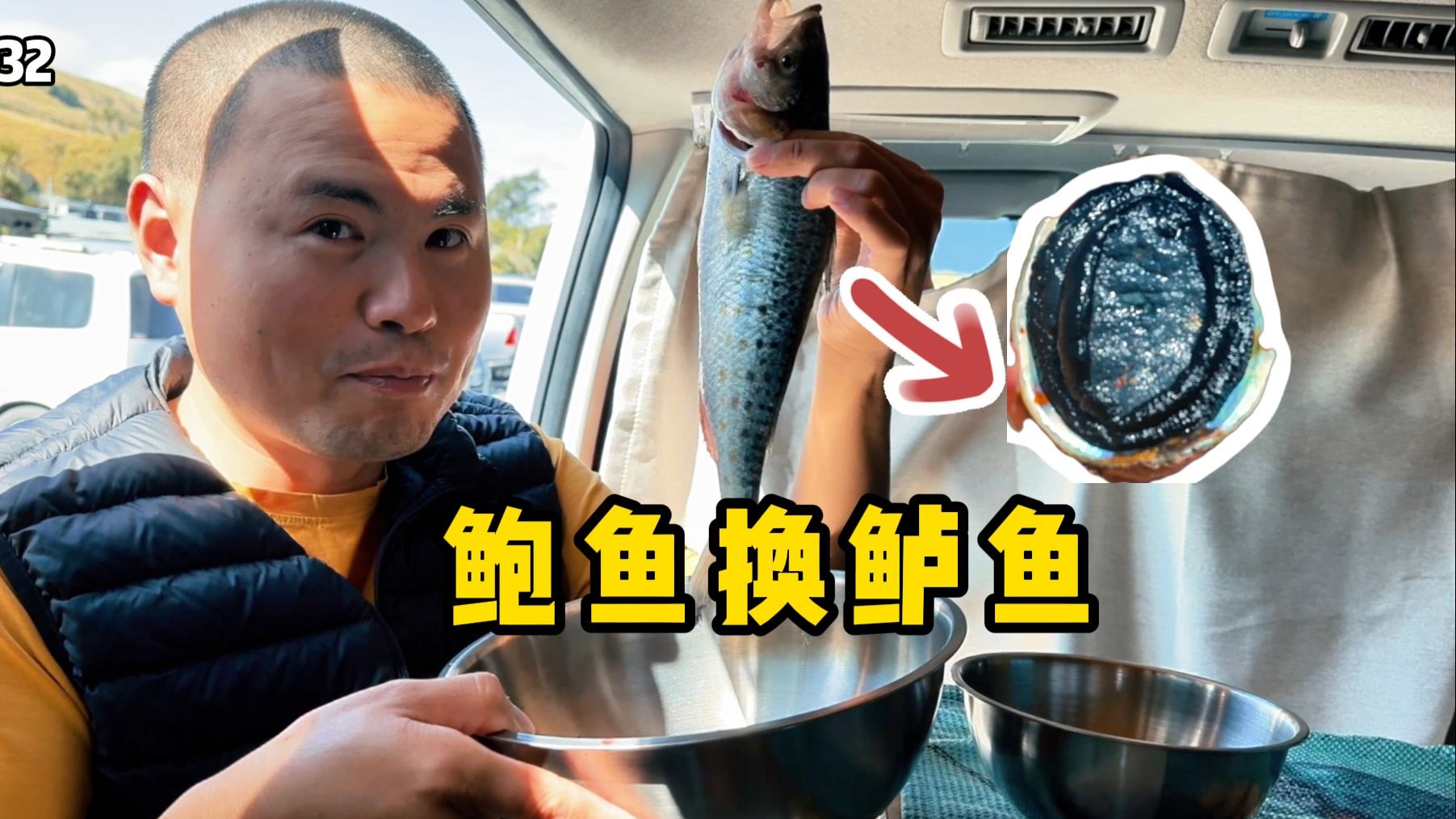 新西兰南岛继续赶海,露营车停在海边下海抓鲍鱼,用一条13厘米长的鲍鱼换了条鲈鱼,这是亏了还是赚了?