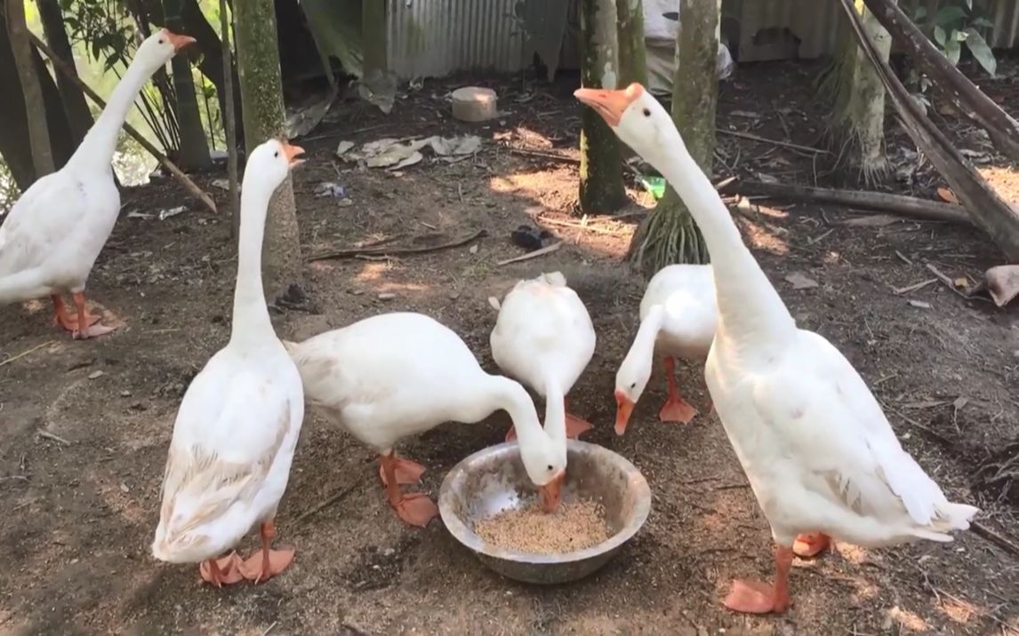 大白鹅一起干饭 这场面太和谐了