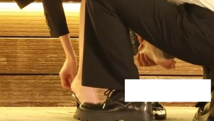 【关晓彤】光脚小皮鞋,这体验很酸爽