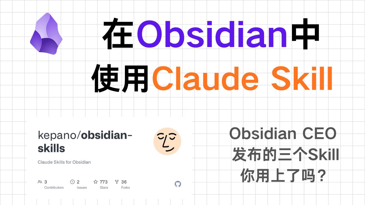 UP主: 封面: 简介:Obsidian 的 CEO Stephan Ango (kepano) 最近发布了 3 个 Claude Skill (Agent Skill),能帮你自动写笔记、画 Canvas 架构图、创建bases数据库。今天教大家怎么把这些 Skil...