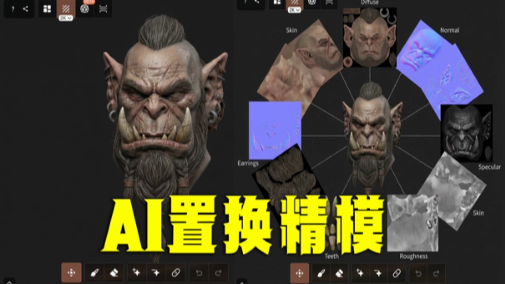 AI建模无死角贴图,无痕置换3D模型丰富细节,毛孔皱纹清晰可见#AI建模 #AI3d #3d打印 #3d建模 #AI模型贴图@礼帽大叔【收徒】...