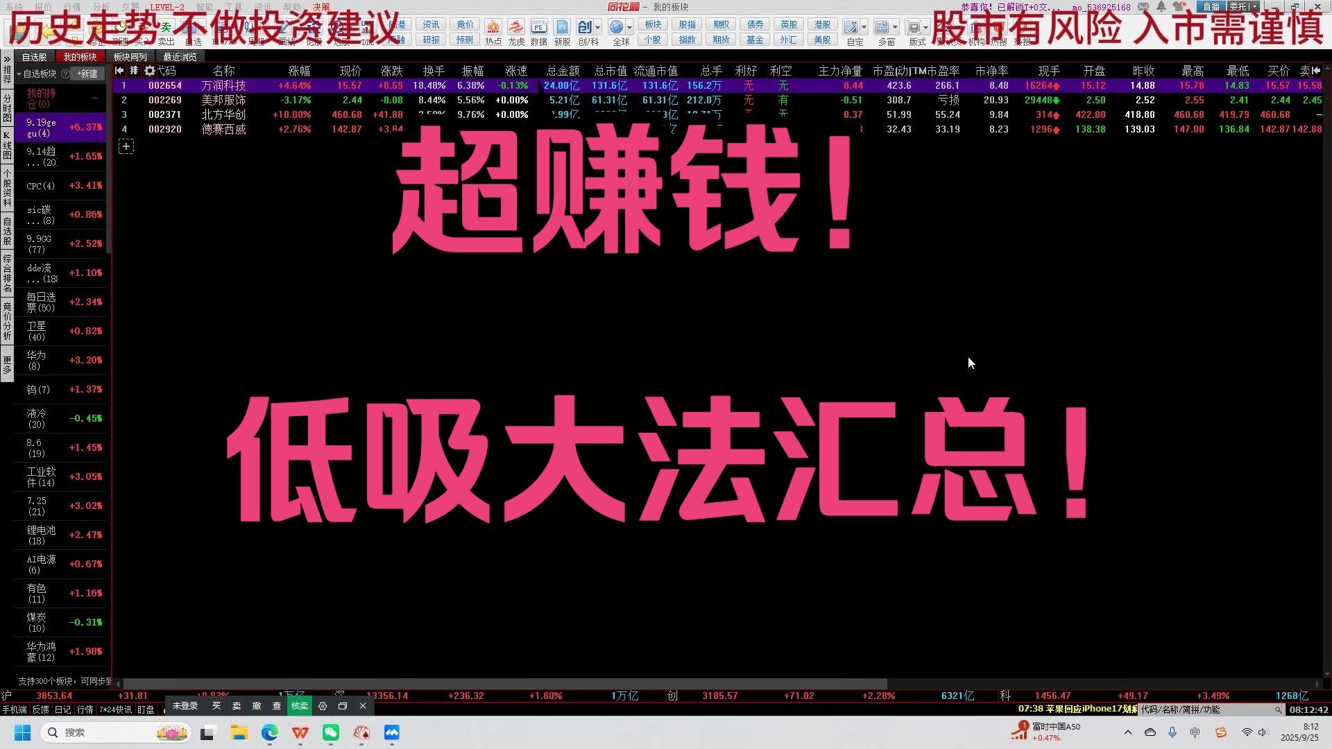 米来哆哆的视频 超强赚钱低吸大法汇总 渣男半导体,下周怎么做?A股低保票怎么选?商业航天“去伪存真”,谁是“真”? 那个男人回来了!陈小群,余哥,联手再压航天发展异动! 超强DDE埋伏法,如何上车东方国信 退潮期保命技巧大公开! 哈焊华通,买点逻辑