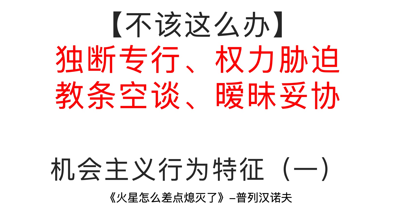 【不该这么办】独断专行、权力胁迫、教条空谈、暧昧妥协|机会主义行为特征(一)