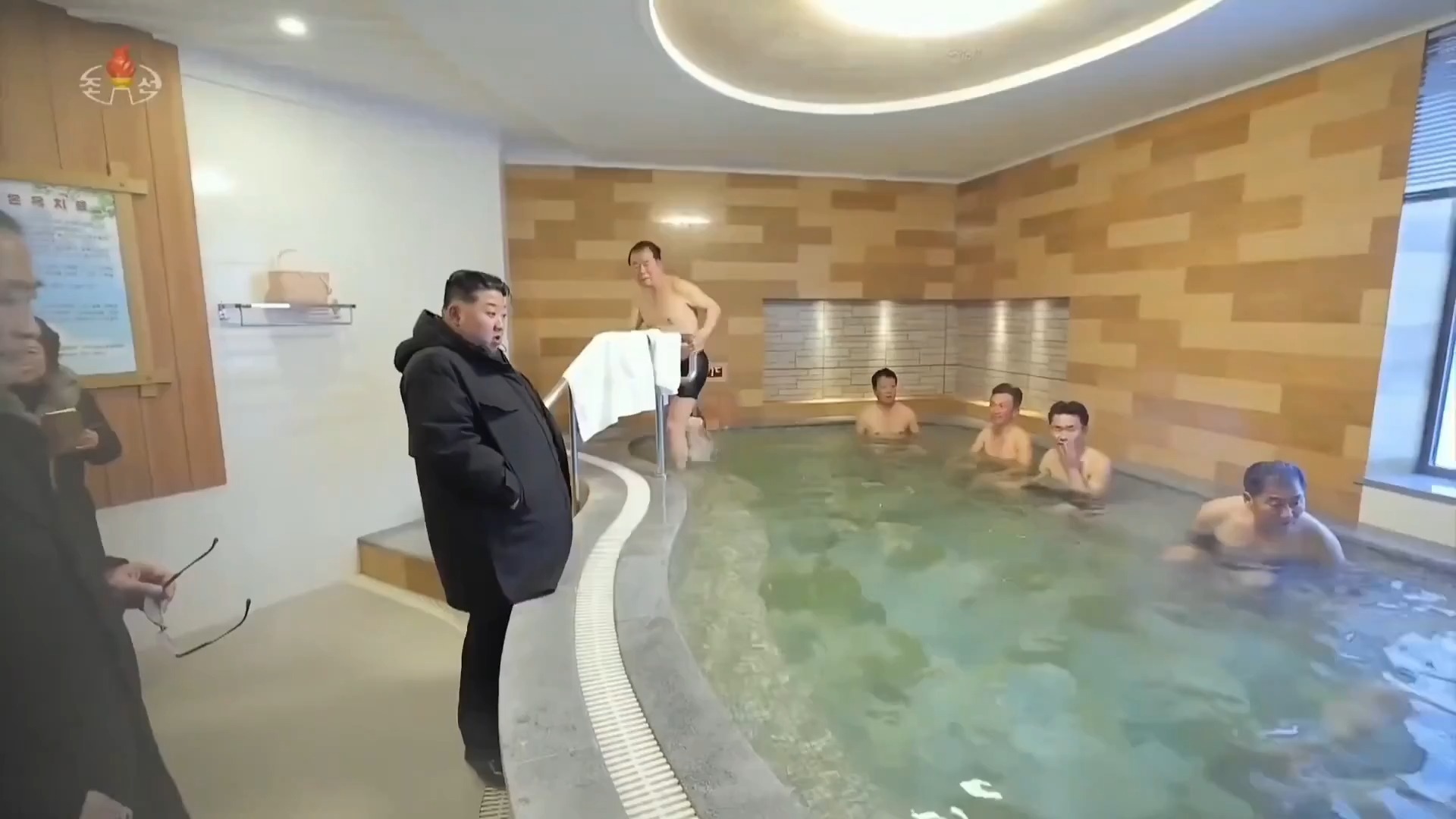 伟大的将军与民众在温泉放松
