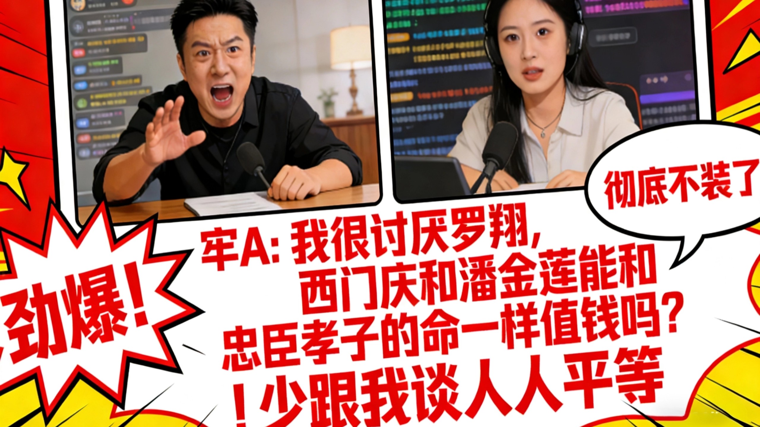 太劲爆了!【牢A】跟三妹连麦后,彻底不装了!【牢A】我很讨厌罗翔,西门庆和潘金莲能和忠臣孝子的命一样值钱吗?!少跟我谈人人平等!