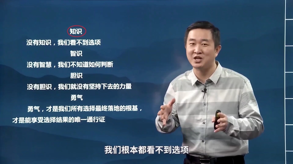 徐涛老师:人生就是选择,选择就是人生,要做出正确的选择,必须具备知识、智识、胆识、勇气这四个要素。