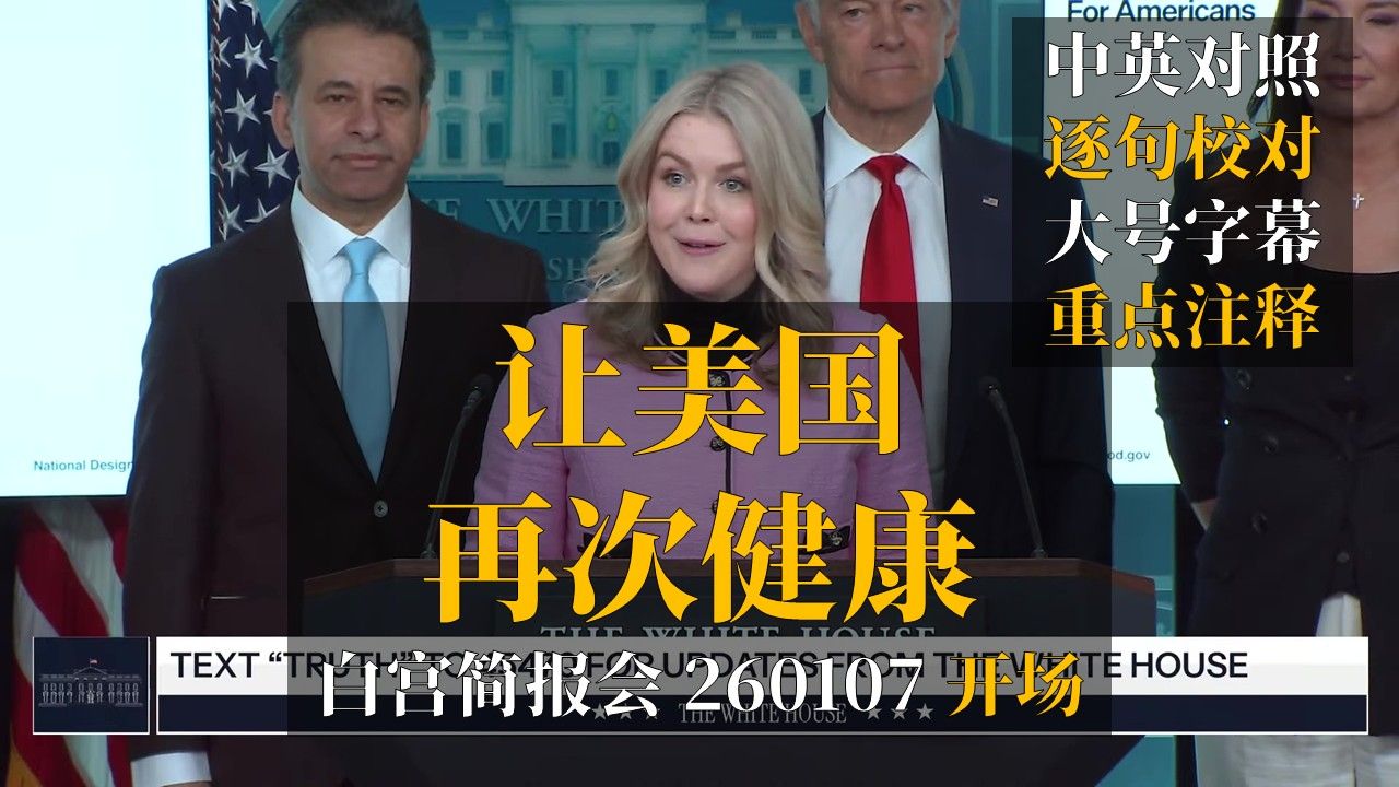 领悟英文的视频 英语听力训练 35 | 让美国再次健康 | 白宫简报会 260107 | 中英对照 逐句校对 大号字幕 重点注释 英语听力训练 30 | 特朗普圣诞全国讲话 | 中英对照 逐句校对 大号字幕 重点注释