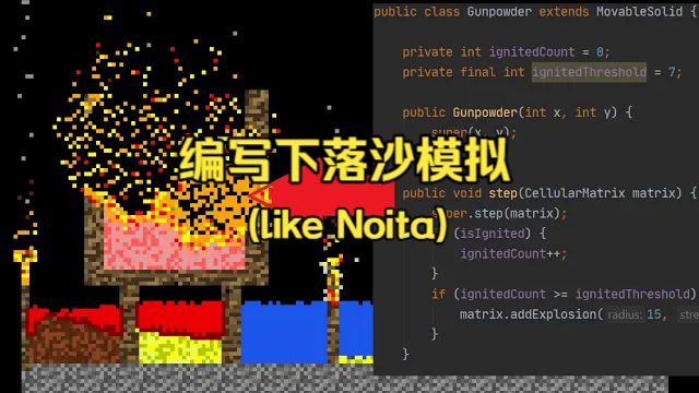UP主: 封面: 简介:https://www.youtube.com/watch?v=5Ka3tbbT-9E&t=536s本视频讲解如何用元胞自动机编码下落沙子模拟(类似 Noita 游戏)。先介绍下落沙子模拟概念,以沙子、石头和水为例说...