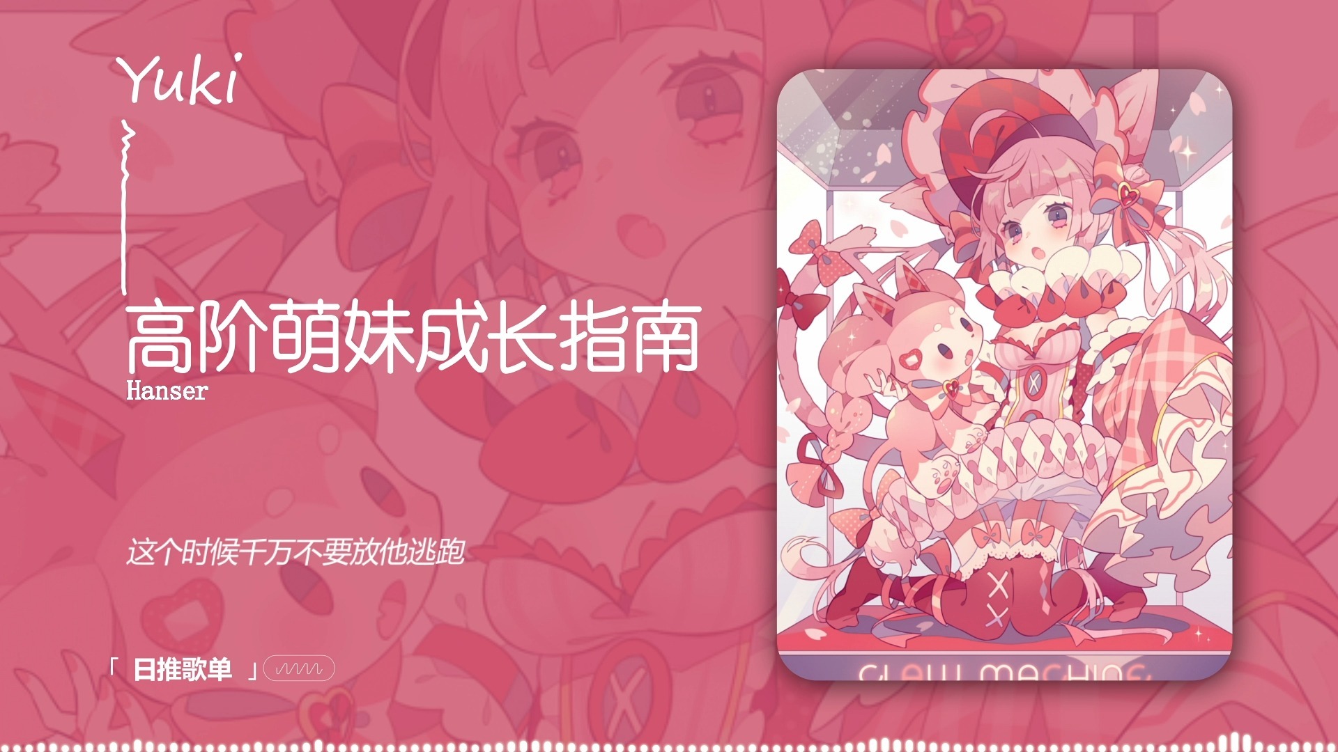 UP主: 封面: 简介:歌曲:高阶萌妹成长指南歌手:Hanser歌曲传送门:高阶萌妹成长指南(萌妹的代表词) - Hanser - 单曲 - 网易云音乐图片素材来自于网络壁纸、音乐仅作分享,请大家支持原版...