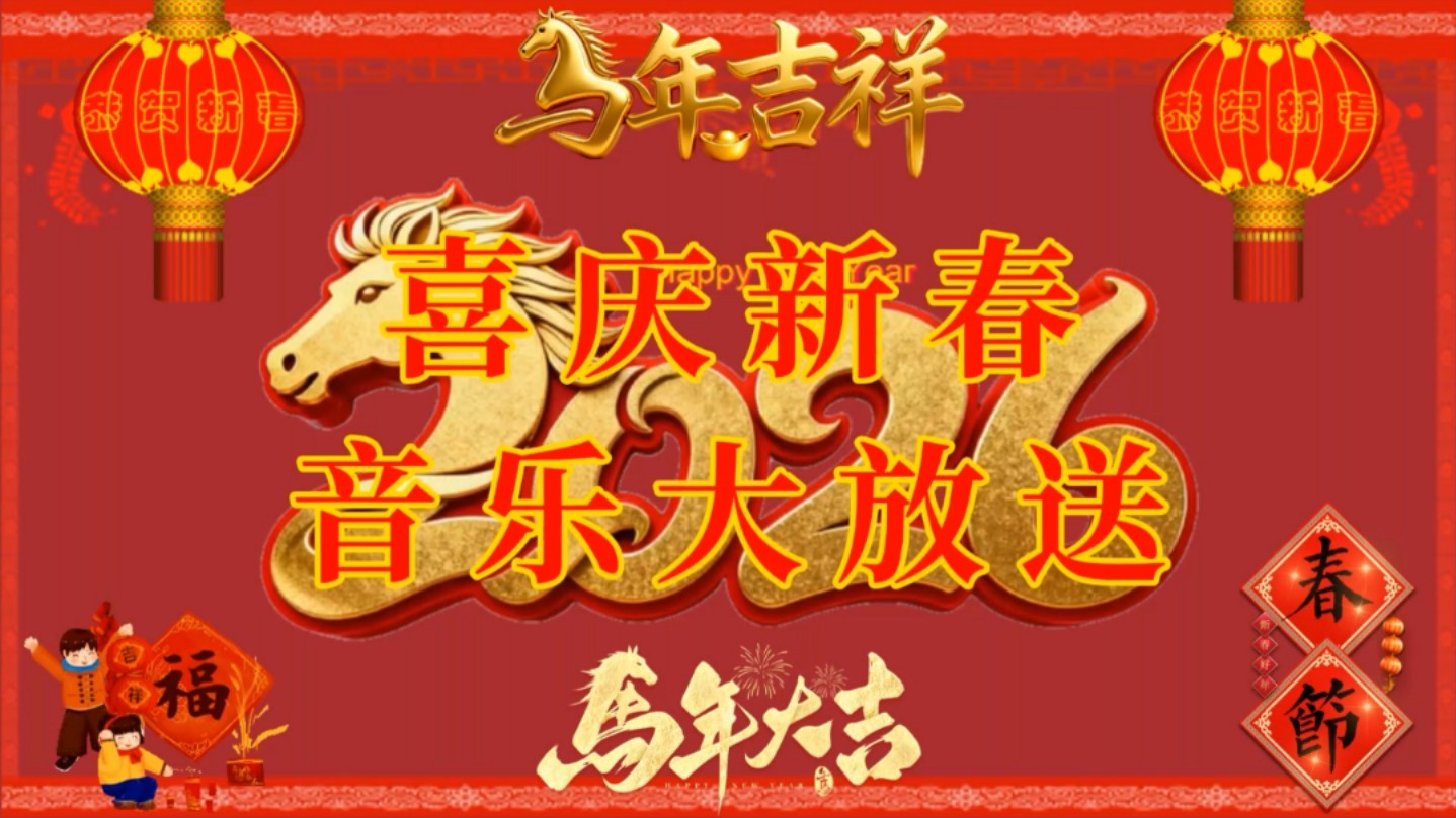 UP主: 封面: 简介:主要20首最喜庆、最好听的新春音乐大放送,在此提前祝福大家新年快乐!本期视频目录0:00《过年啦》-贺东3:39《拜新年》-凤凰传奇7:17《恭喜发财》-刘德华10:40《好运来》-...
