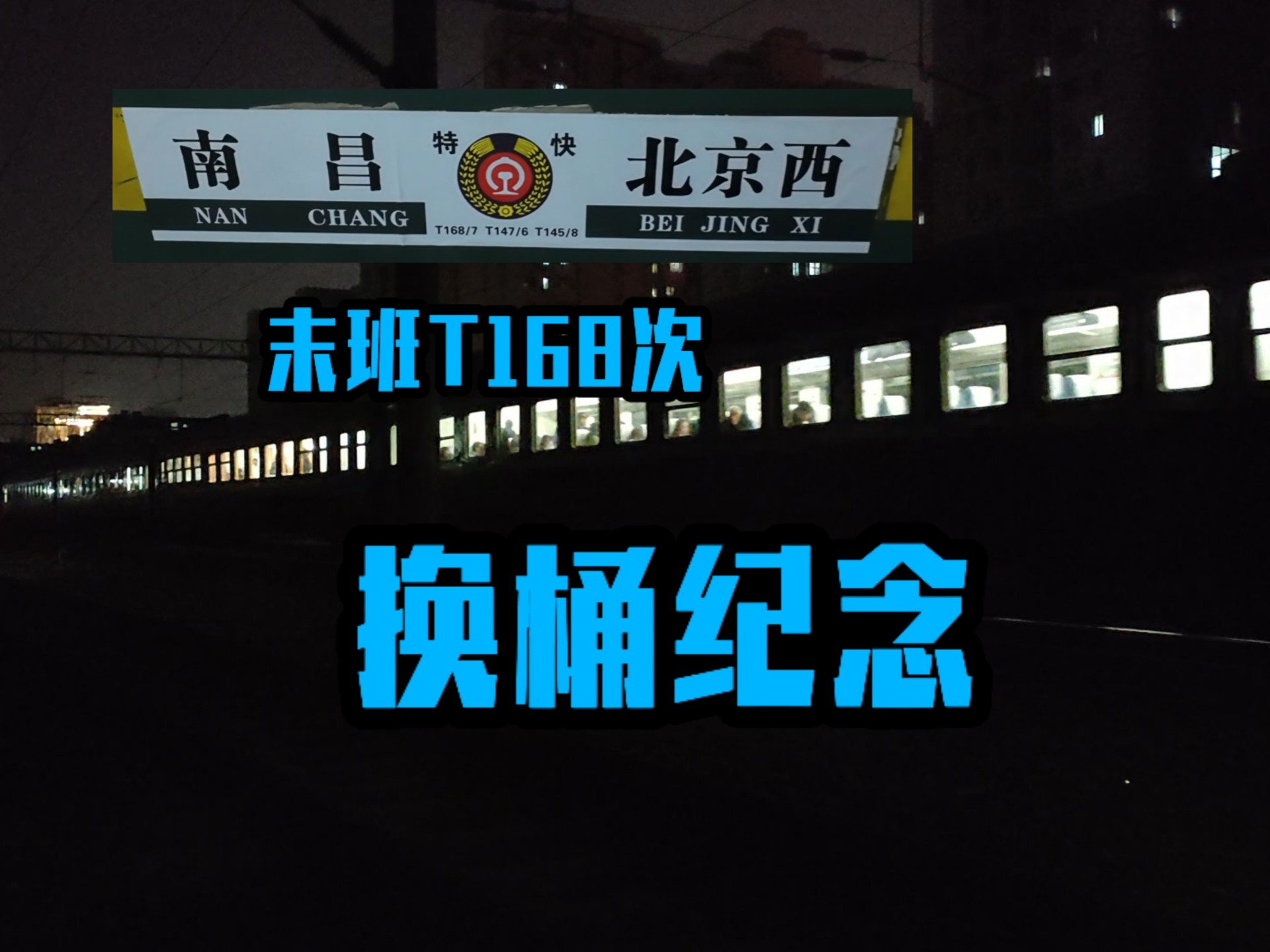[CR•换桶纪念]T168次末班列车2026.1.24 出南昌站,换桶纪念。 - T168次列车纪念视频