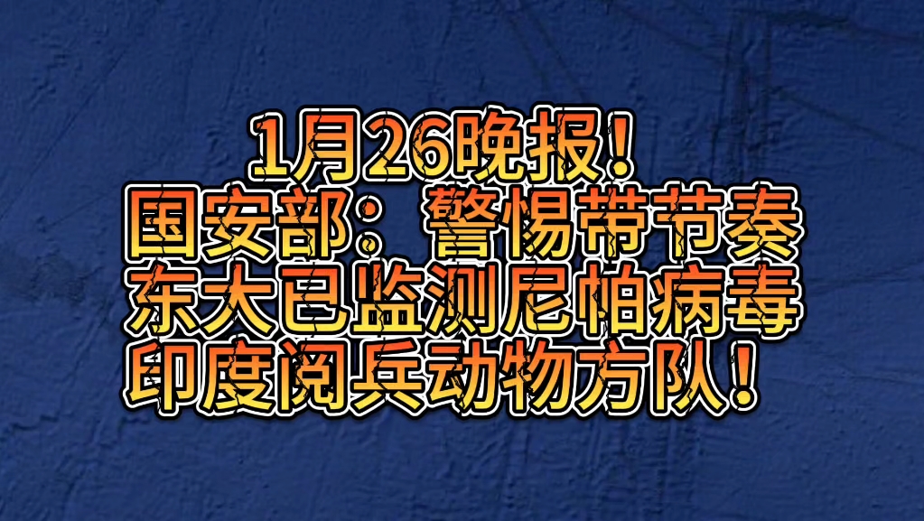 军情巴朗的视频 【1月26晚报】外交部:春节期间避免前往日本!国安部:警惕带节奏!东大已监测尼帕病毒!伊朗警告美国:将袭击美航母!直击印度阅兵式,首次引入动物方队!乌拉圭将访华 9月27!波兰指控东大!日本开房!韩国选妃!警惕马来西亚!巴勒斯坦申请加入金砖!印度退役所有米格21!菲律宾遭热带风暴持续肆虐!国际局势
