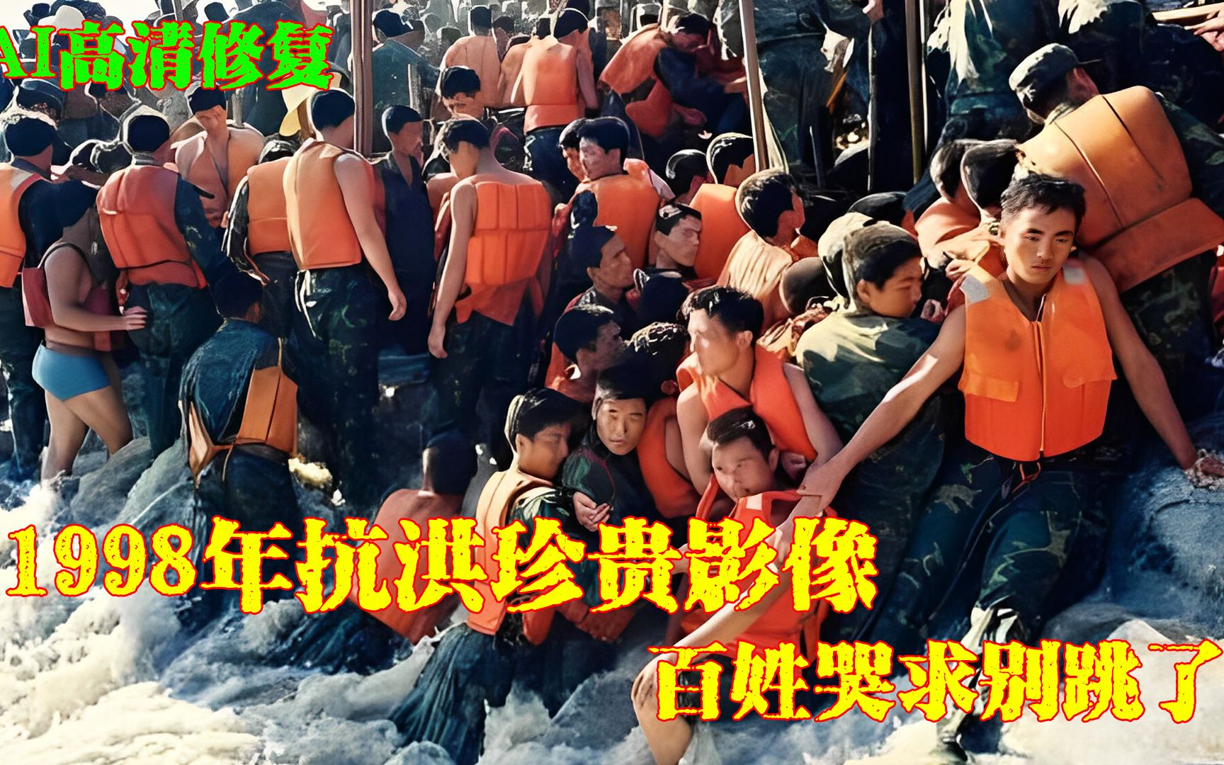 1998年军民抗洪珍贵影像,30万军人跳江布防,百姓哭求你们别跳了