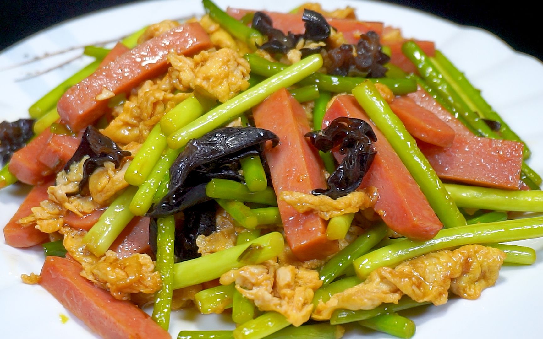 火腿跟蒜苔搭一起怎么做好吃?大厨教你饭店做法,出锅给肉都不换