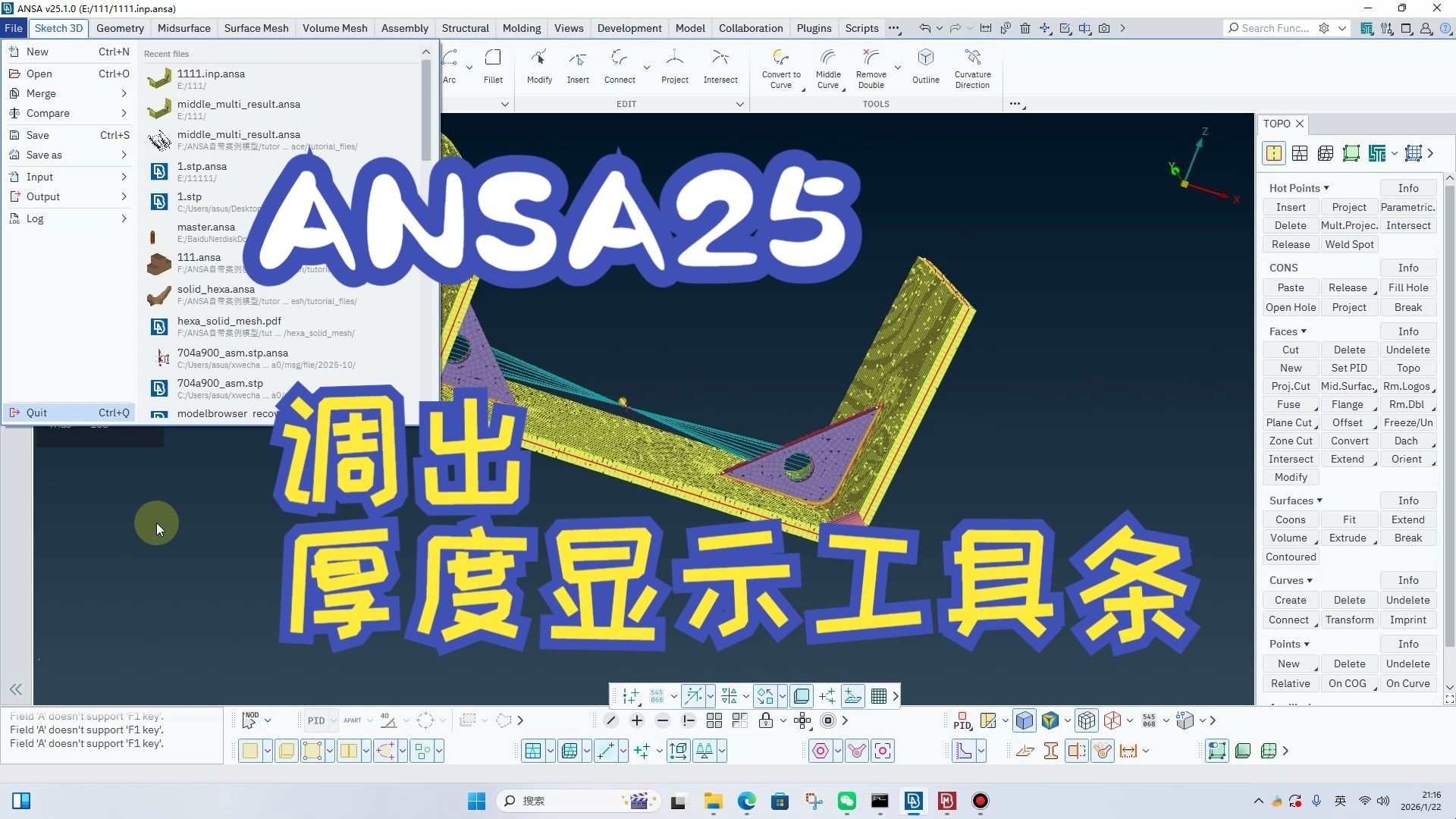 ANSA25调出厚度显示工具条