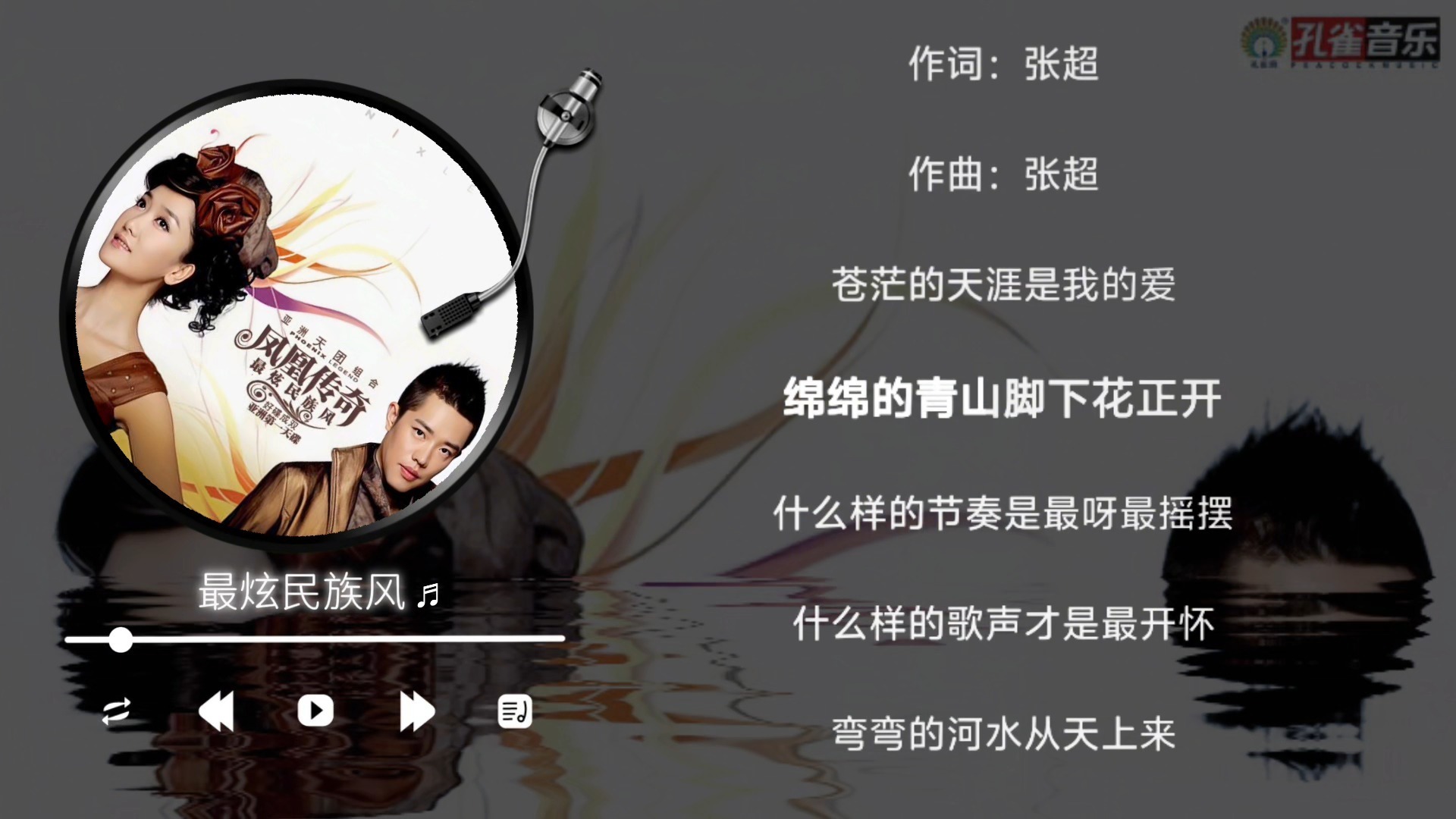 凤影醍醐的视频 凤凰传奇-最炫民族风(伴奏) 梁静茹-给未来的自己(伴奏) 苏运莹-时候(伴奏) 胡歌-指纹(伴奏) 王心凌-大眠(伴奏) 许嵩-有何不可(伴奏) 李荣浩-不将就(伴奏) 林俊杰-曹操(伴奏) F.I.R.飞儿乐团&彭佳慧-心之火(伴奏) 张韶涵-淋雨一直走(伴奏) 周兴哲/单依纯-永不失联的爱(伴奏) 郭静-下一个天亮(伴奏) 张紫豪-可不可以(伴奏) 徐佳莹-一样的月光(伴奏) 王力宏/谭维维-缘分一道桥(伴奏) 梨冻紧/Wiz_H张子豪-罗生门Follow(伴奏) 于文文-体面(伴奏) 印子月-落空(伴奏) 刘珂矣 - 半壶纱(伴奏) 朴树-平凡之路(伴奏)