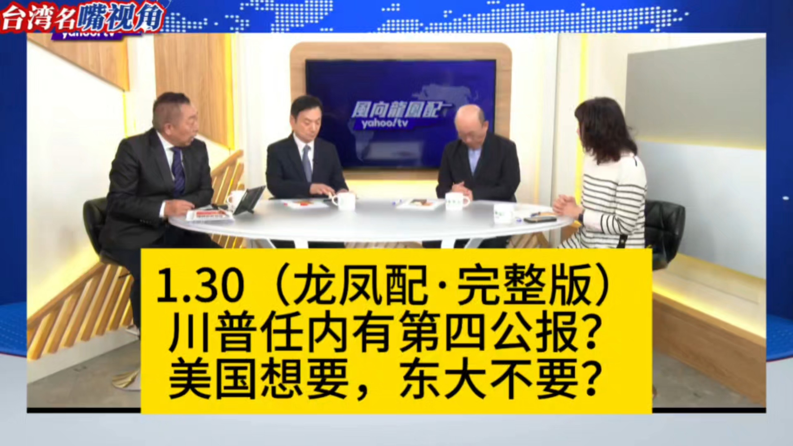 台湾名嘴视角的视频 1.30(龙凤配·完整版)川普任内有第四公报?美国想要,东大不要?②美国盟友排队访陆 1.26(龙凤配)「切了22分钟打tan的」美国国防战略报告!②德国军火商去蛙岛了 12.25(龙凤配·完整版)美国低头!湾湾准备交易