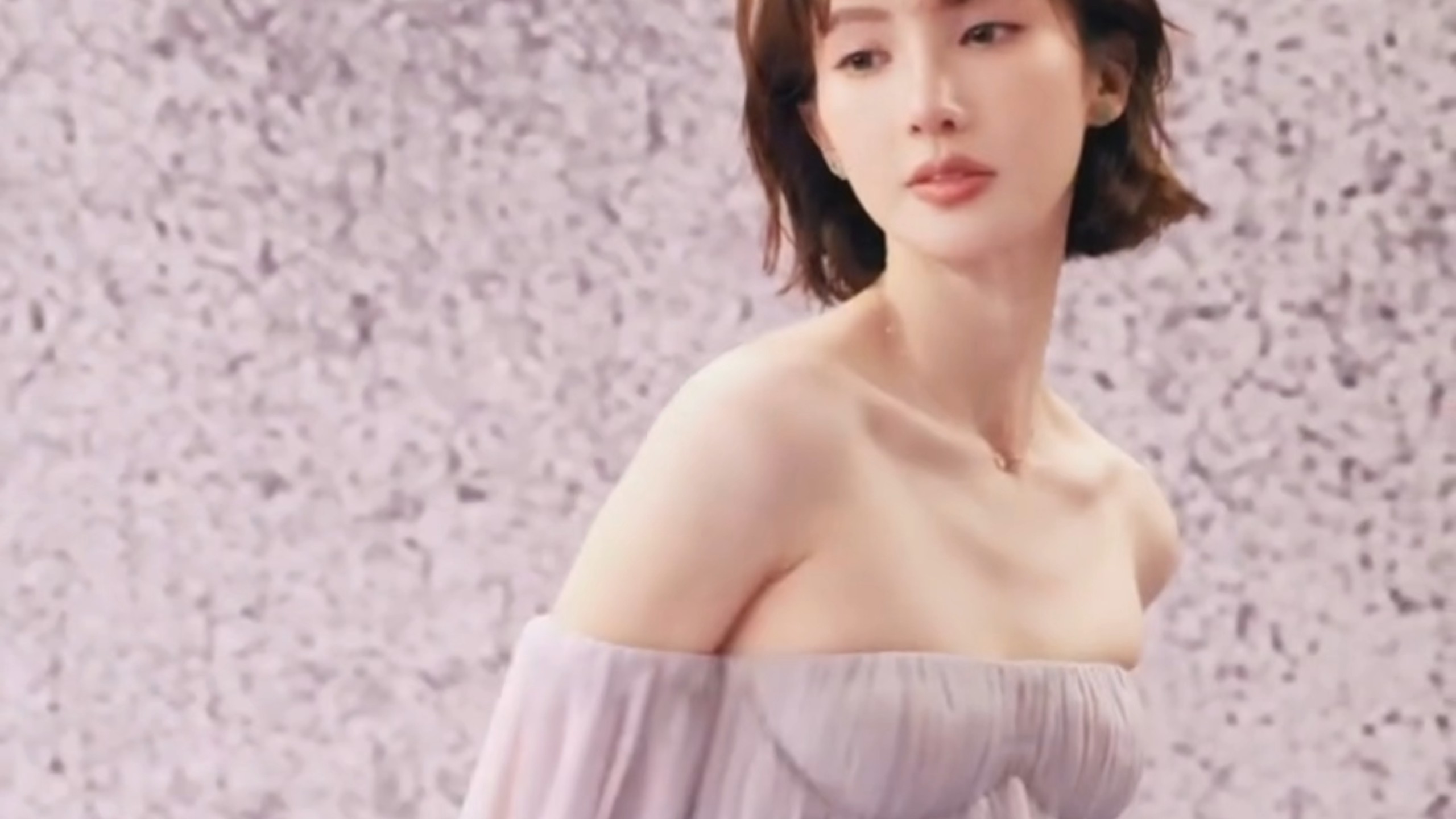 短发金晨淡紫色抹胸裙 真的性感