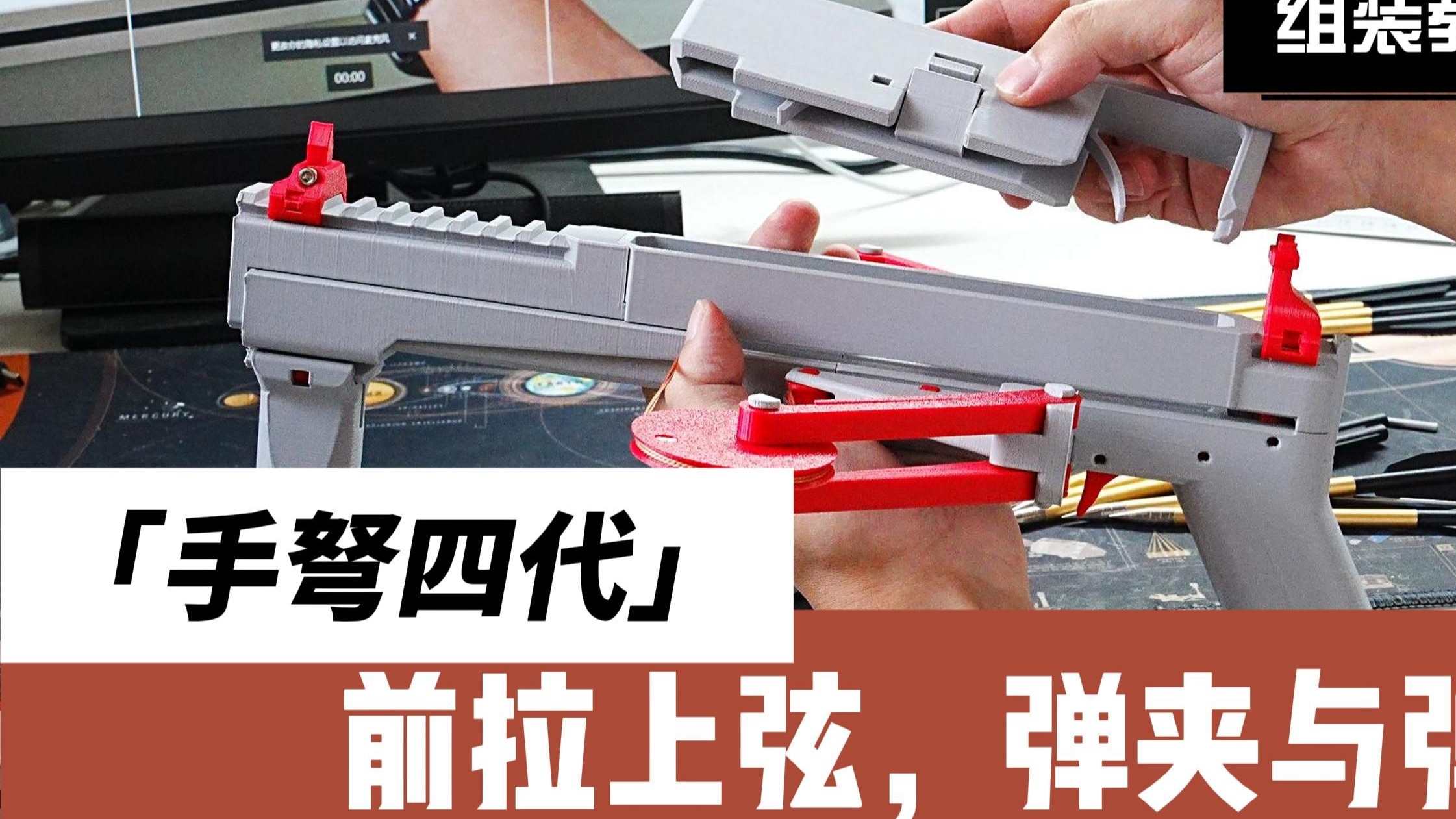 UP主: 封面: 简介:手弩四代采用了前拉上弦设计,最大弹容量10发。使用168箭。需准备的额外零件:M3X8内六角螺钉3个,M3X12内六角螺钉2个,M3X5沉头螺钉2个,以及1mm粗的无弹性尼龙线作为弓弦...