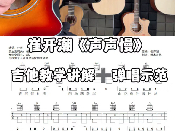 青砖伴瓦漆,白马踏新泥!吉他弹唱教学《声声慢》崔开潮《声声慢》吉他谱