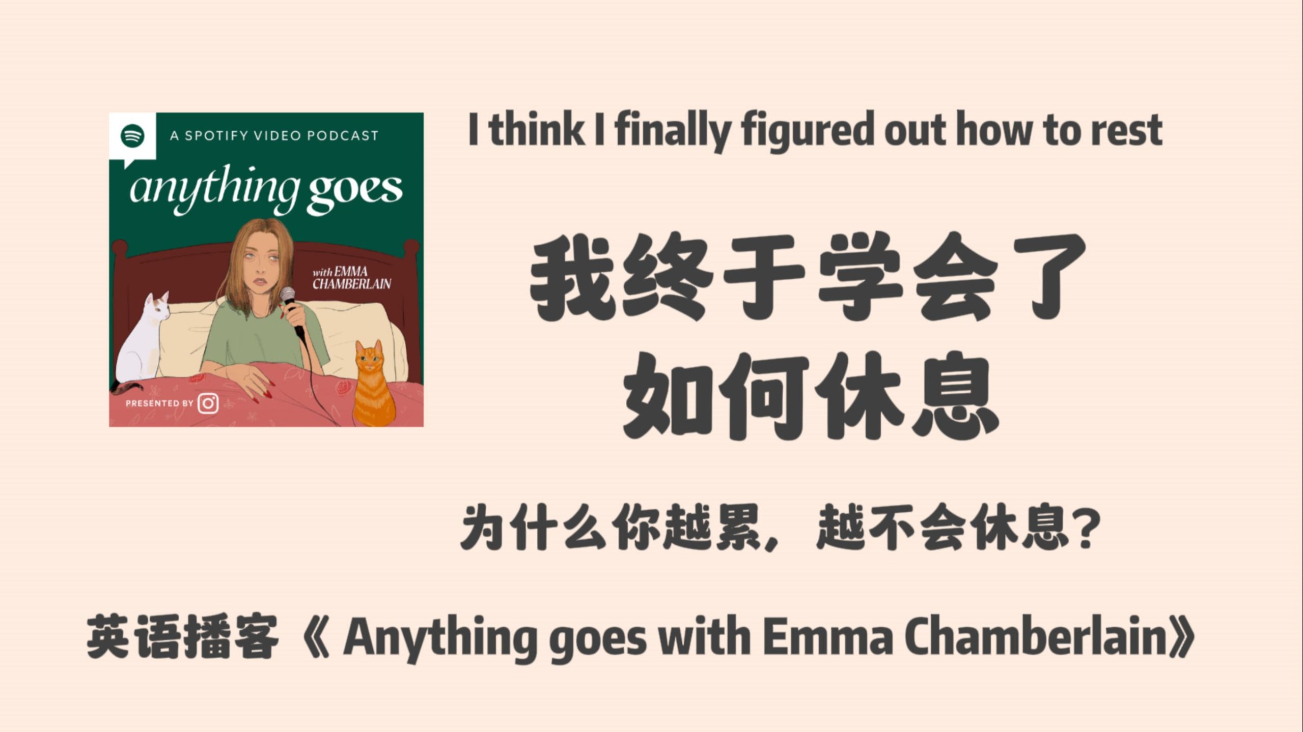 UP主: 封面: 简介:如需本播客英文+中英文稿pdf合集,或想支持up持续更新,可在up B站小店订阅[给心心]>>https://b23.tv/3Jl0sr8播客:《anything goes with emma chamberlain》宝藏女孩 Emma...