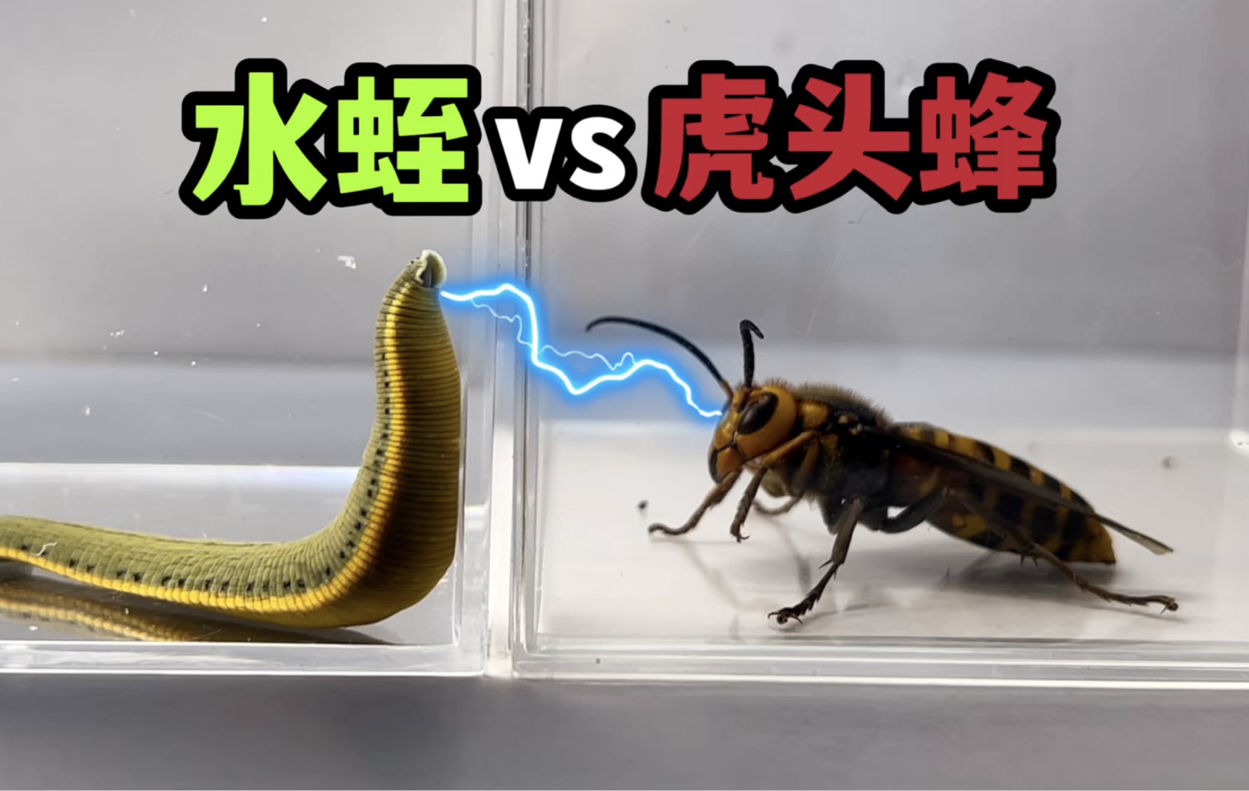 把一只虎头蜂和水蛭关一起!会发生什么事?
