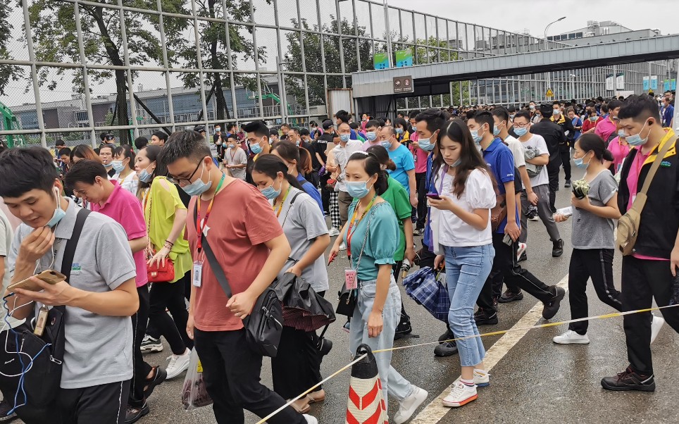 万人电子厂下班场景,现场人山人海,有恐惧症的不要看