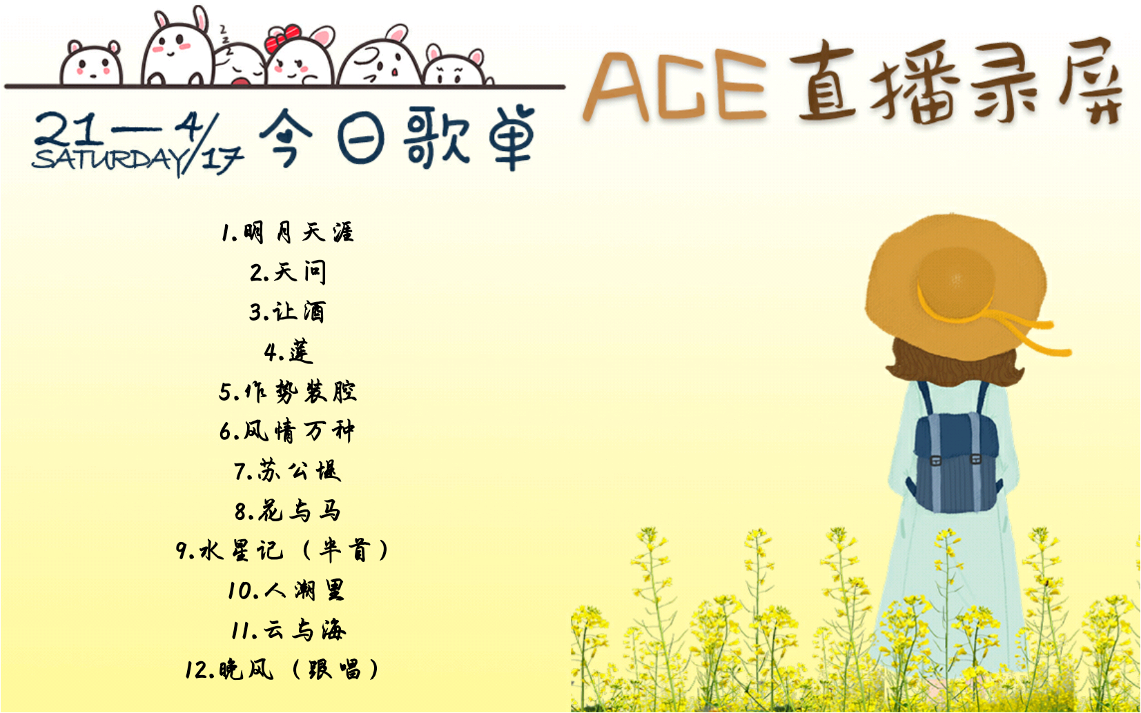 等了这么多年,阿册终于唱明月天涯了 | 20210417克拉直播歌曲单截