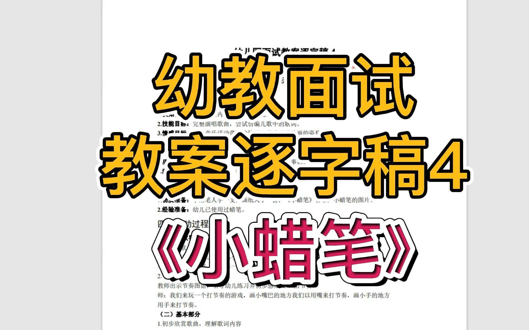 教师资格证丨教资面试幼儿园试讲教案逐字稿4-《小蜡笔》 - 幼教女声4