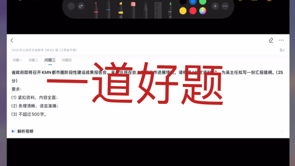 本期视频讲解2025江西省考申论(省试卷)第三题,这道题目分类比较清晰,提炼总结的压力比较大,如何去粗存精,留下最重要的点,是值得我们反复琢磨思考的。希望听完视频小...