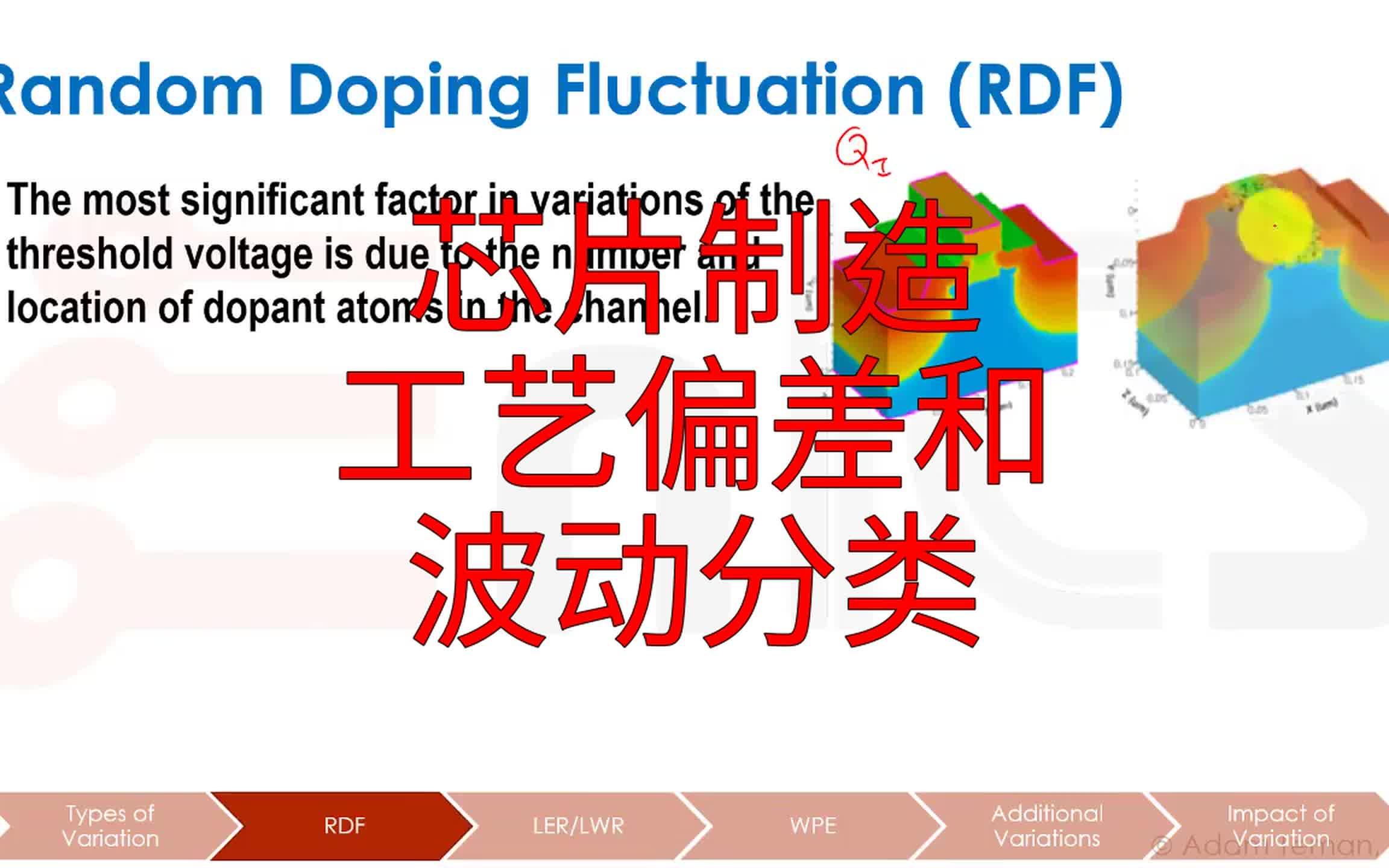 本讲深入剖析了芯片制造中的工艺偏差问题。内容涵盖从晶圆厂到晶体管的多级偏差来源,重点区分了随机波动与系统波动的特性,并以随机掺杂波动、线边缘粗糙度和阱邻近效应为...
