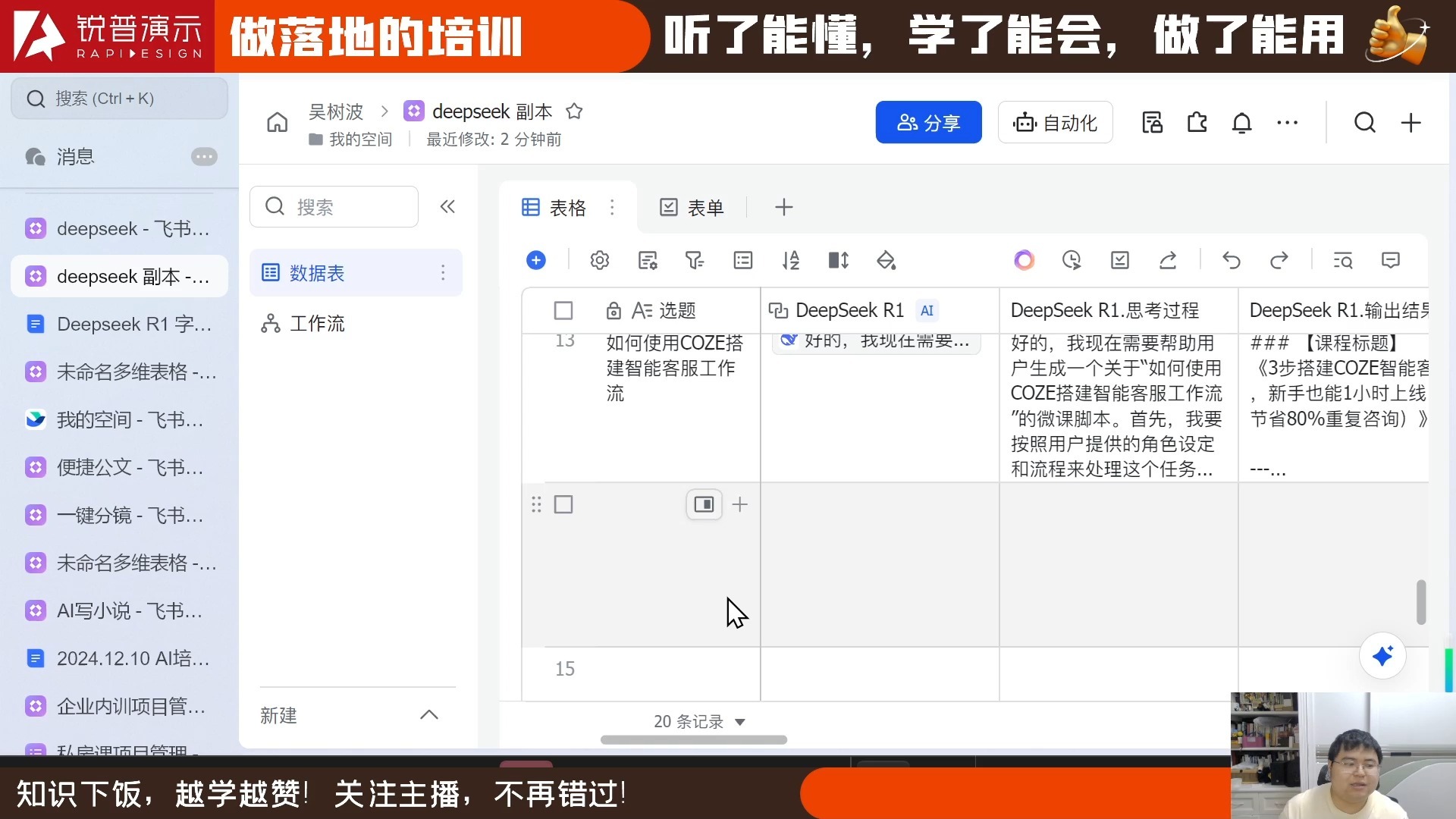直播回放·deepseek+飞书多维表,简易工作流搭建