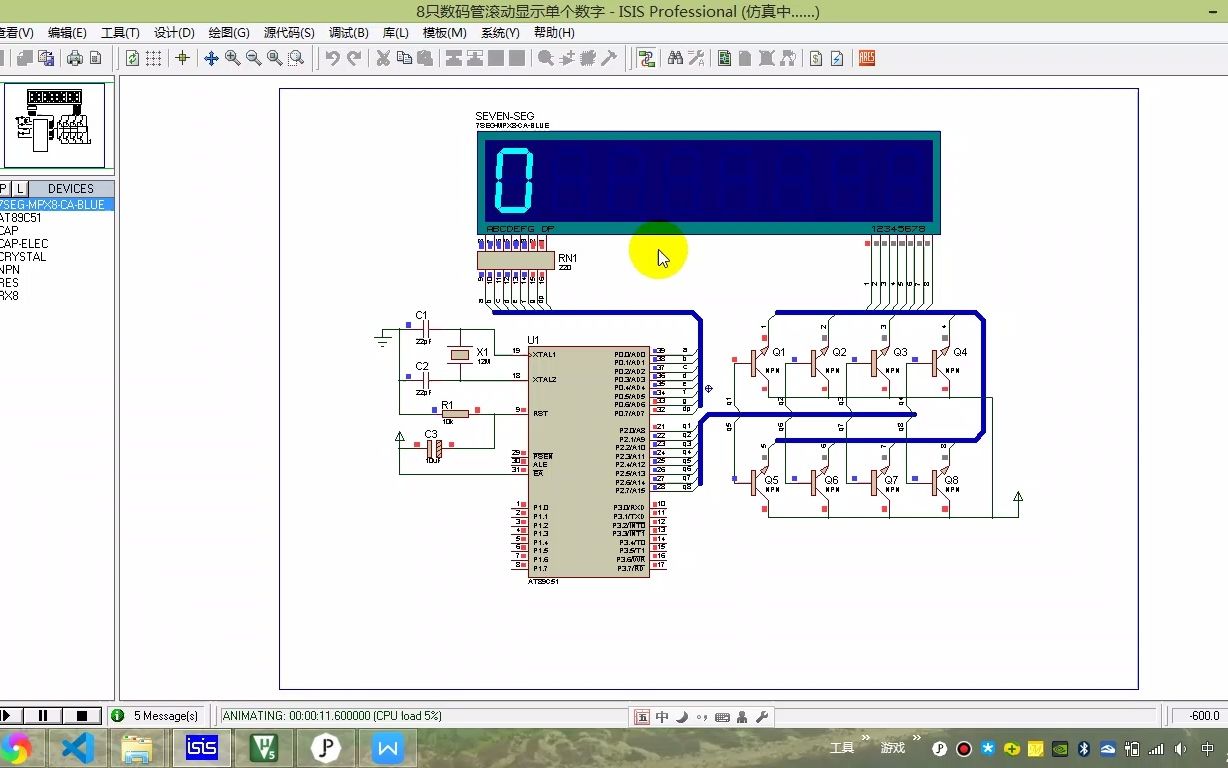 单片机入门第07-08课 8只数码管滚动显示单个数字