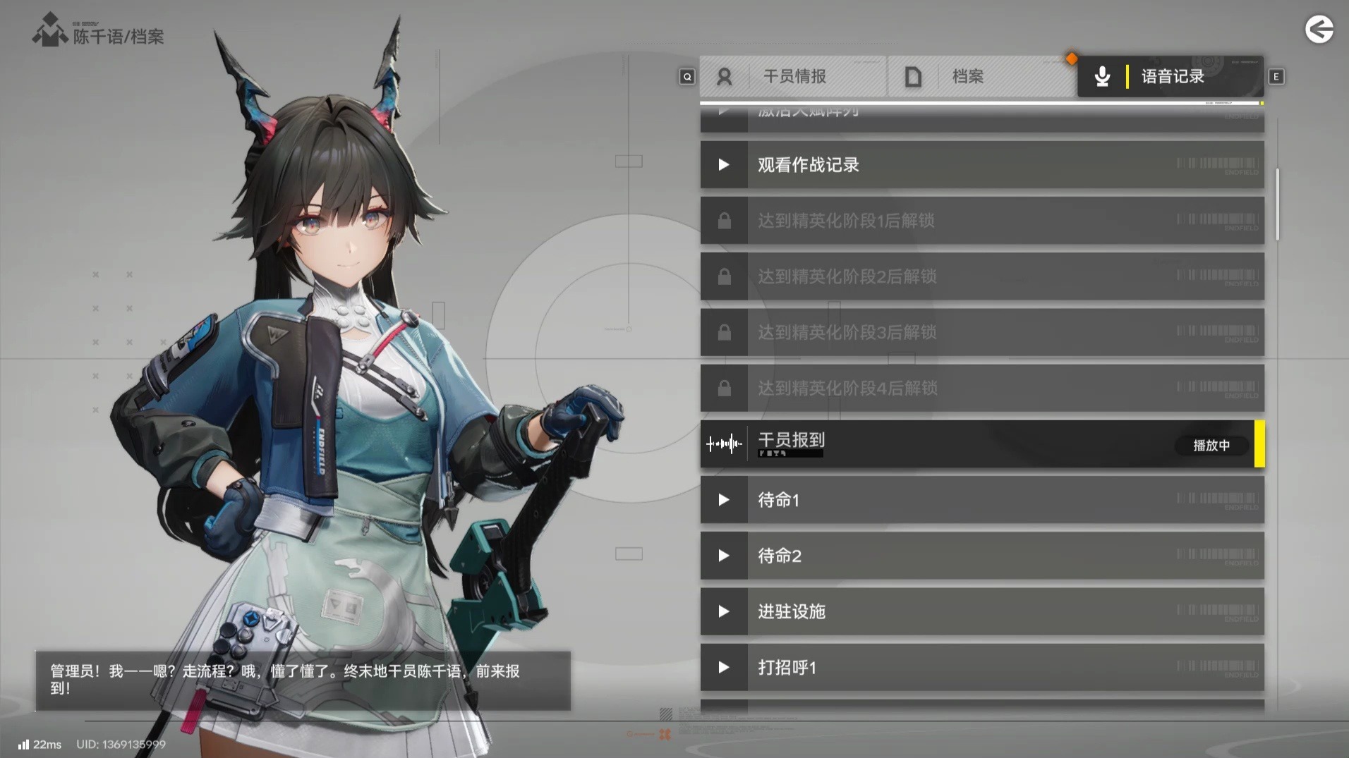 终末地陈千语部分语音录制(无背景音纯净素材)