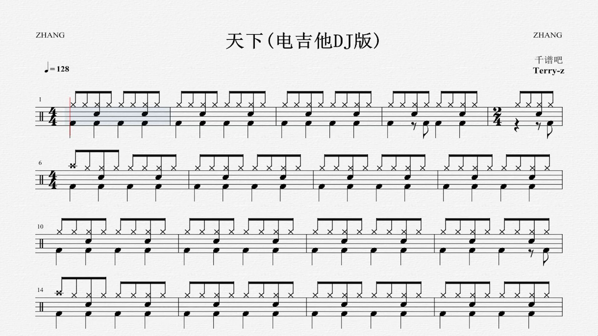 82.动态鼓谱 天下 电吉他版 鼓谱 架子鼓鼓谱 高清鼓谱(全谱)