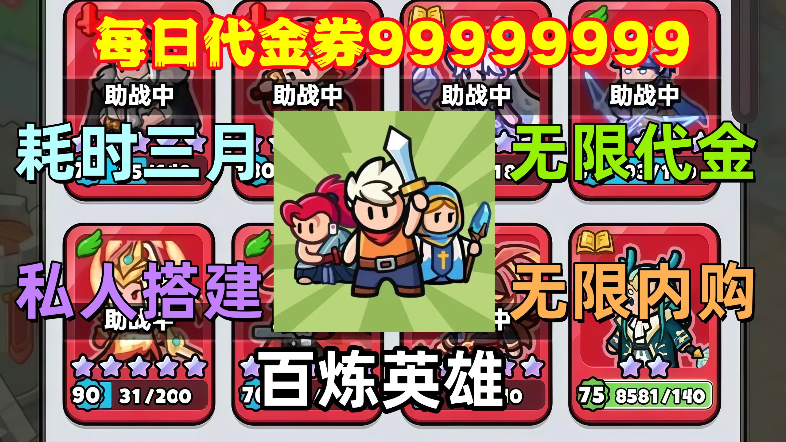 耗时三月搭建【百炼英雄】私人服务器|每日9999999代金|免费充值无限内购