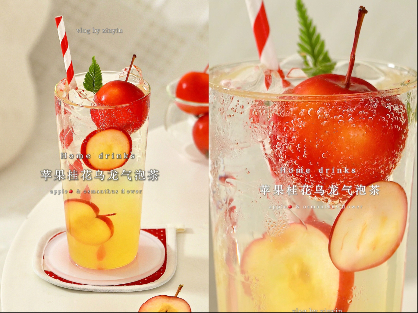 冬天来了,红红的苹果总让我想起圣诞的温馨氛围~今天就做杯苹果桂花乌龙气泡茶,果香四溢,清爽又治愈!红苹果桂花乌龙气泡茶做法:① 杯中先加满冰块,叠放苹果片装饰② ...