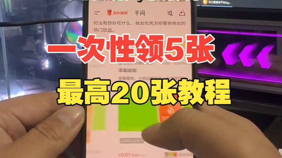 千问红包最新活动!一次性领取5张免单卡教程 千问无需助力 下单奶茶服务器繁忙教程解决,主播21张搞满了,千问送的奶茶因为免费被骑手拿走喝了