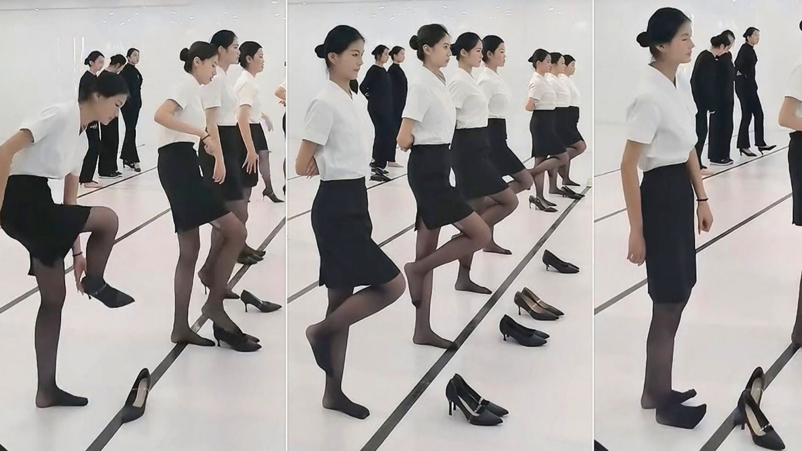 ShowBL > 航服生日常训练 脱鞋单脚站立 练习平衡 制服 礼仪