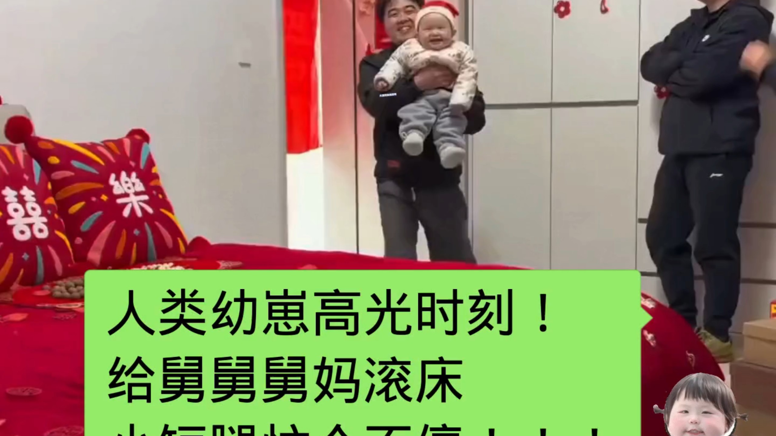 人类幼崽高光时刻!给舅舅舅妈滚床,小短腿忙个不停!!