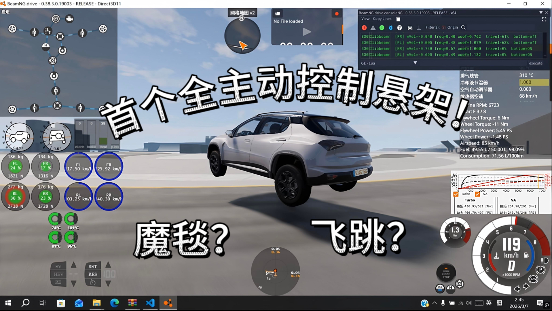 UP主: 封面: 简介:Dynamic Control 为本人从头开始构建右上角控制台可以看到悬架实时数据流此主动悬架目前为alpha测试阶段,此视频为技术展示,还在持续优化中目前为私模录屏出现问题导致画...