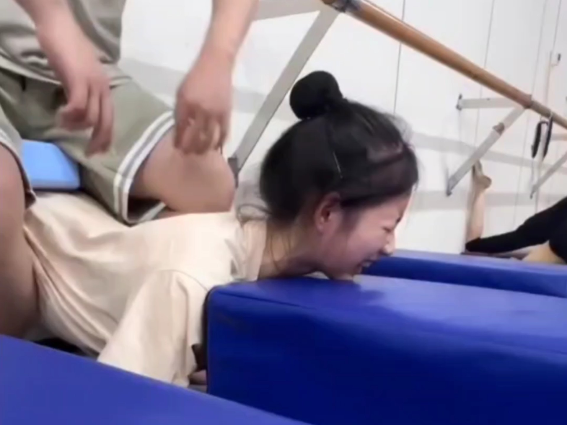 小姐姐被动压腿痛苦