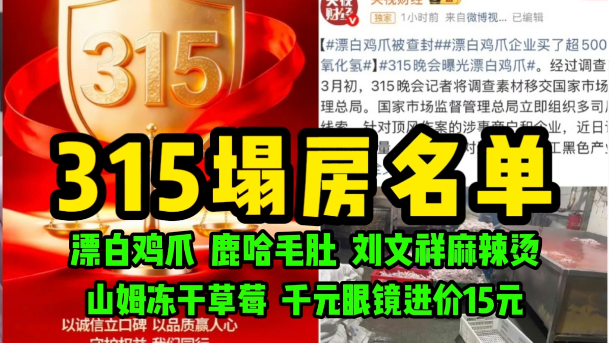 揽一个星星的视频 2026年315塌房名单来了!你踩雷了吗?漂白鸡爪毛肚、山姆重金属冻干草莓、刘文祥麻辣烫鸭肉冒充牛肉、千元眼镜进价15元溢价53倍……天呐还能吃什么…… 紫薯精天塌了!315刘文祥爆雷被立案查处!鸭肉冒充牛肉、卫生脏乱!市场监督管理局已对相关门店立案查处!紫薯精天塌了……