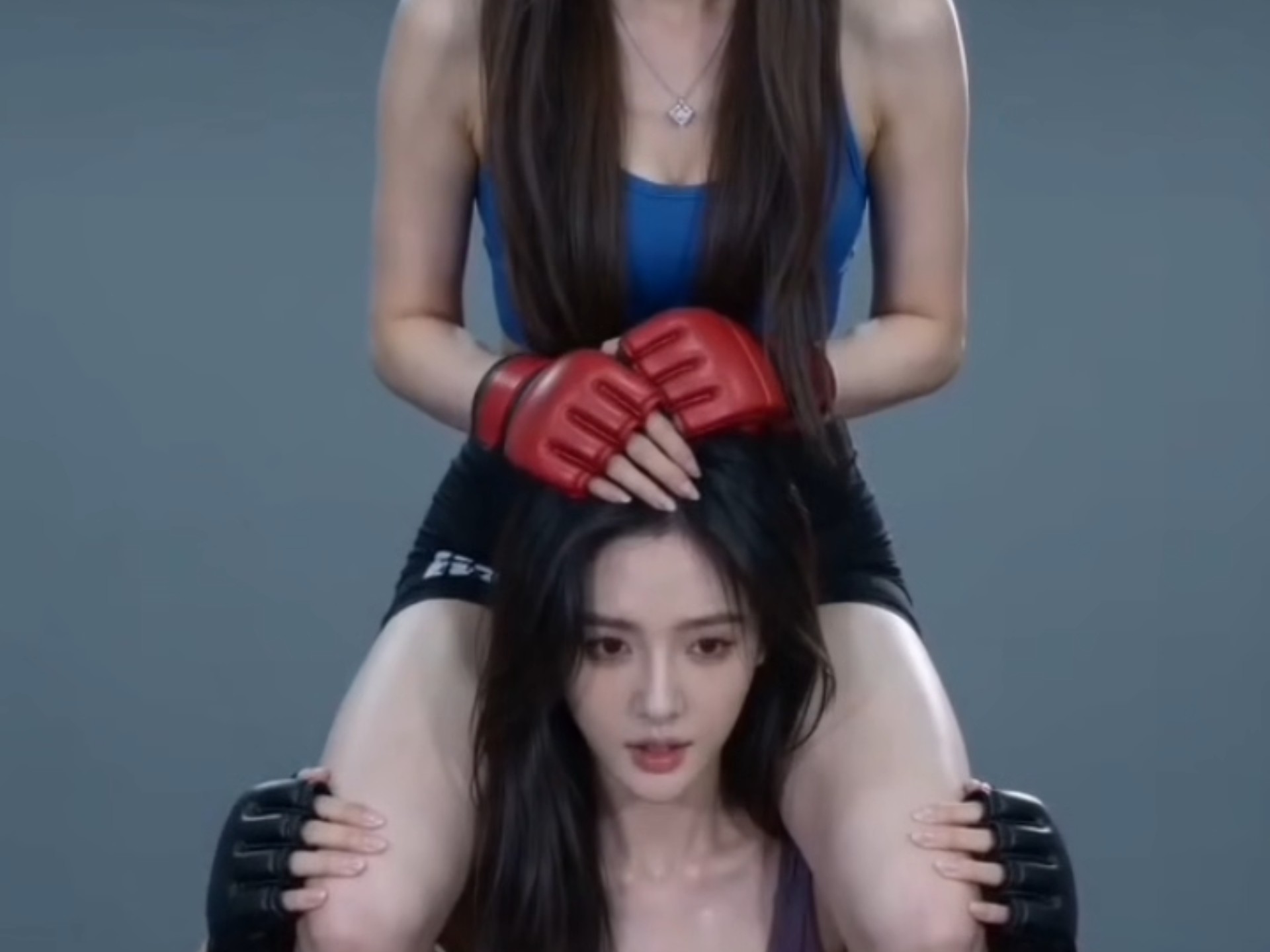 赤脚格斗美少女的骑脖子负重跑训练
