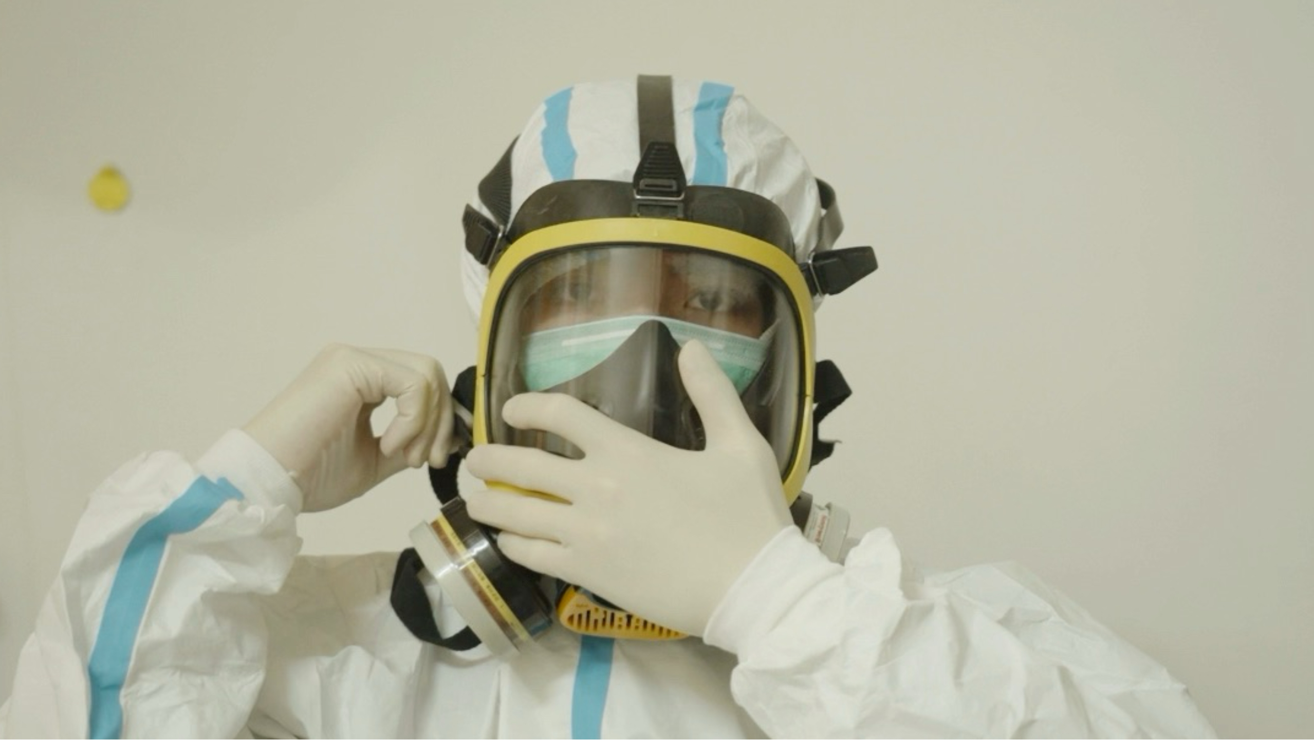 新到霍尼韦尔防毒面具,搭配潜水服白袜和三层手套