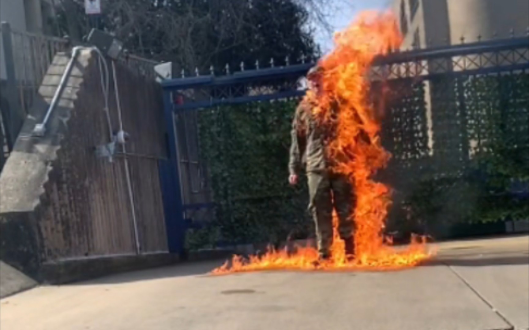 『中文字幕』美国士兵在以色列大使馆自焚并高喊:“解放巴勒斯坦!”