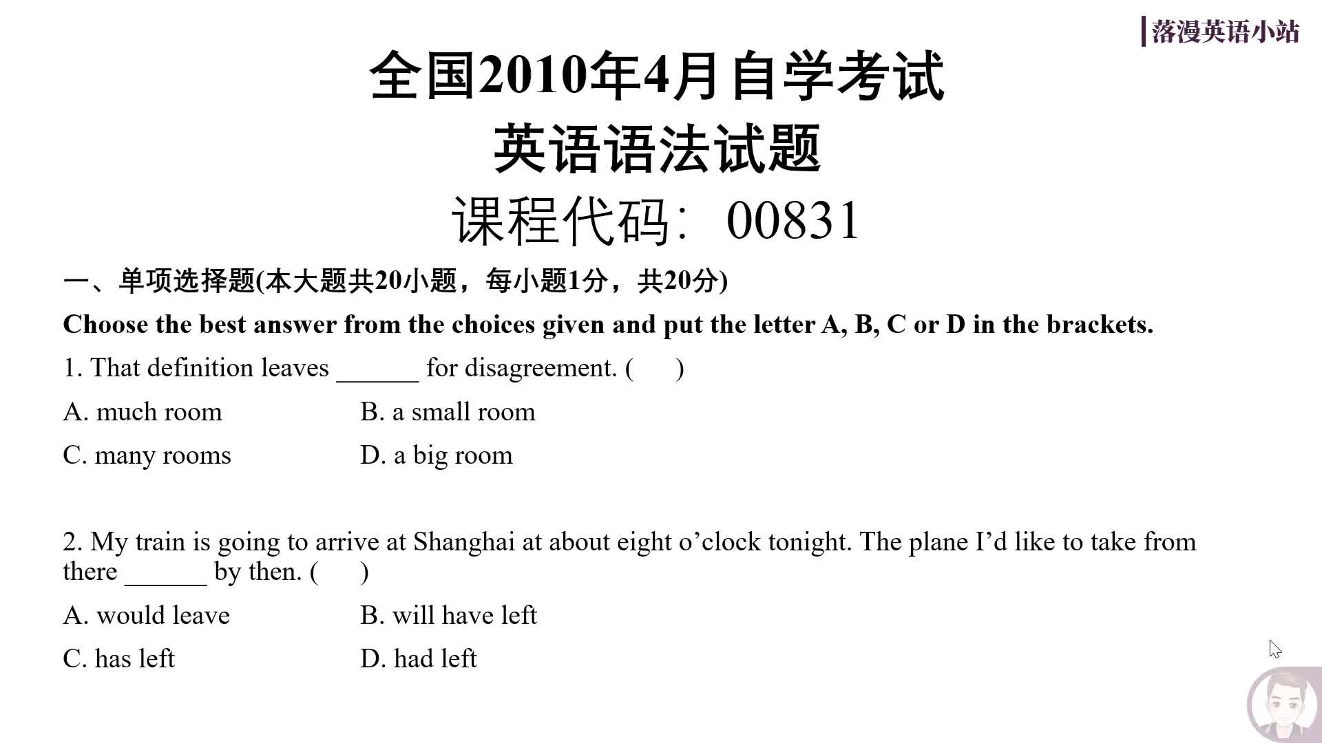 一套老语法试题。