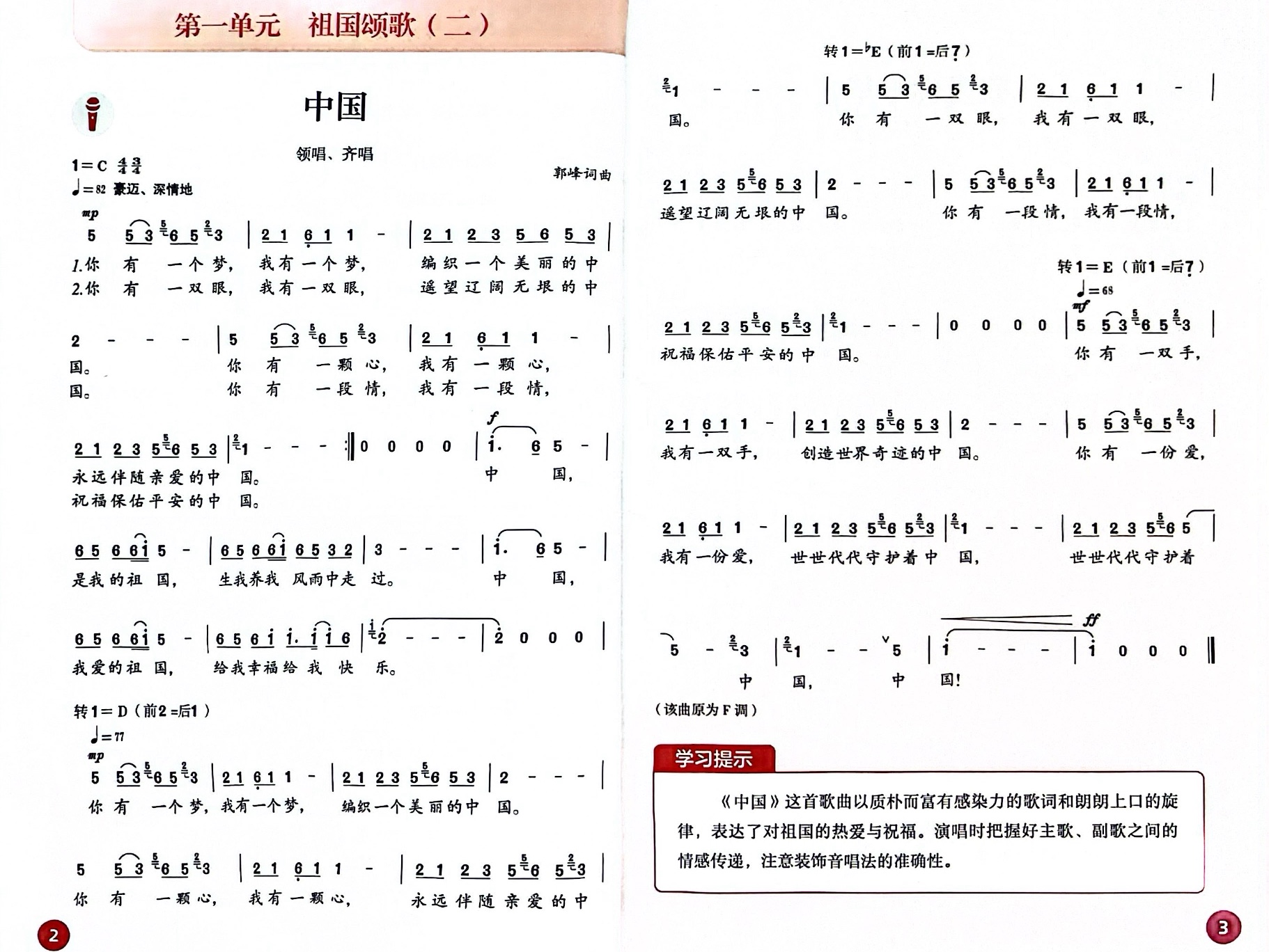 七年级下册 人音版 歌曲《中国》伴奏