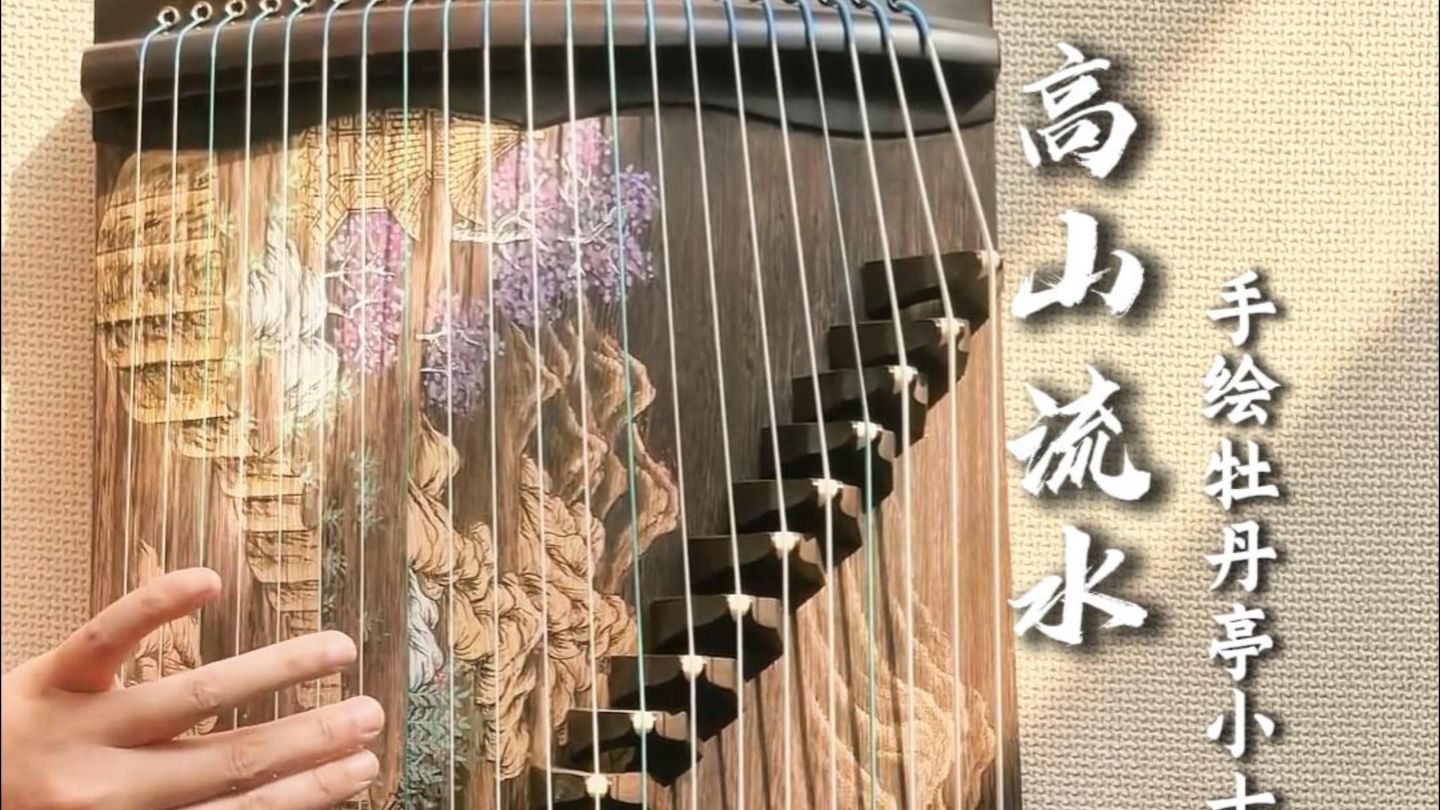 伯牙鼓琴,子期知音;高山流水,千古情深出镜古筝:筝小福21弦手绘牡丹亭款