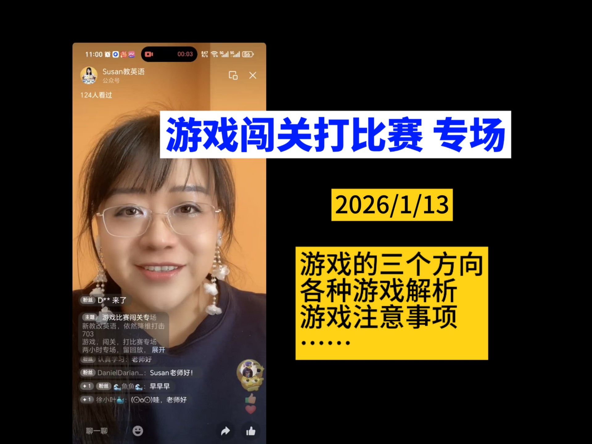 2026/1/13 Susan教英语 游戏专场 【游戏的三个方向;有哪些游戏;怎么玩游戏?游戏注意要点】